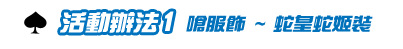 本活動贈送之蛇皇蛇姬裝與6660金撲克幣每個帳號限領取一次,不得重複領取。